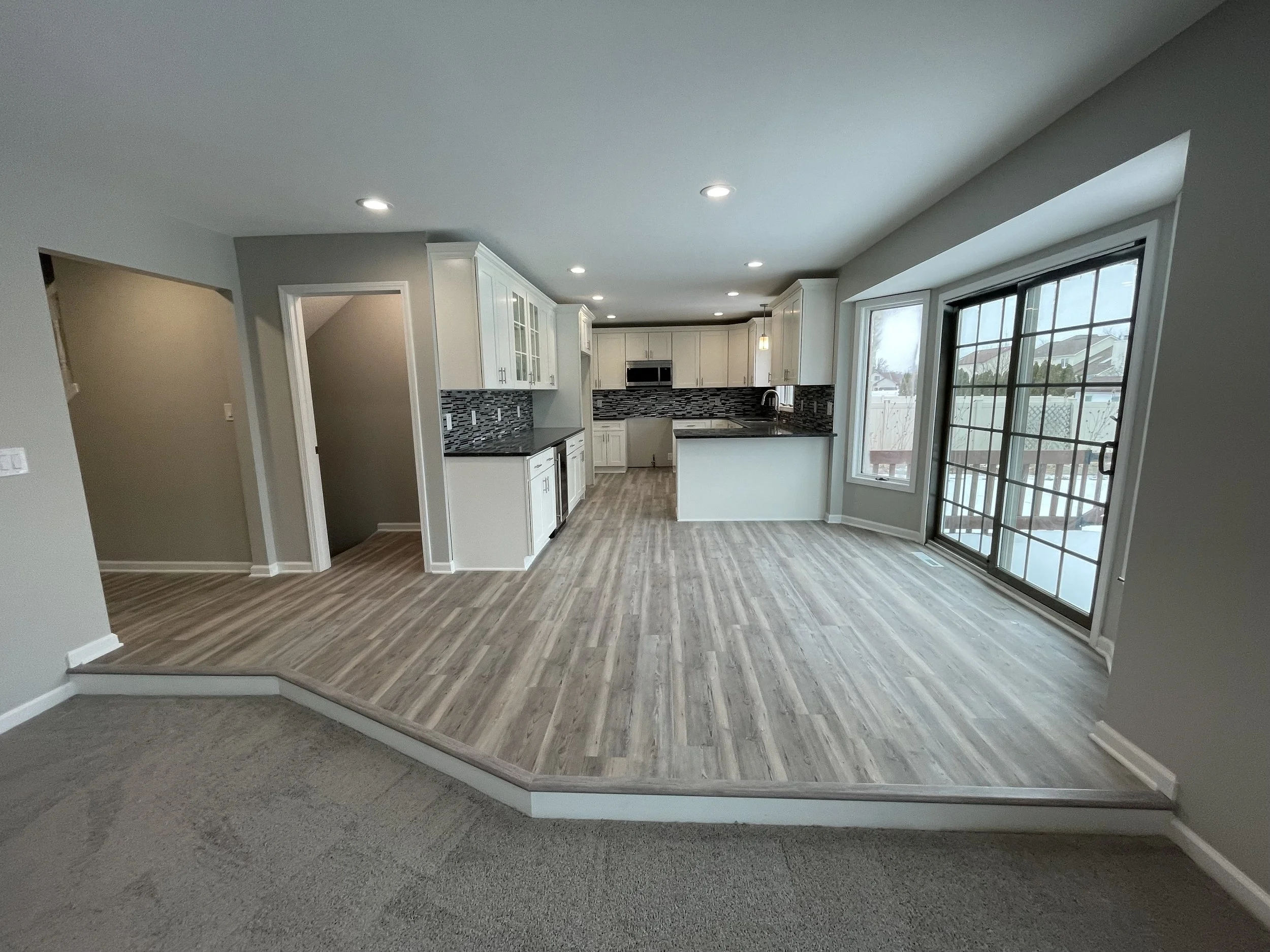 Brand new kitchen with granite countertops, finished drywall, recessed lighting, new flooring, beautiful